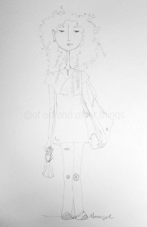 I’m happy with her and will add colour at a later date. Some light bits of watercolour.