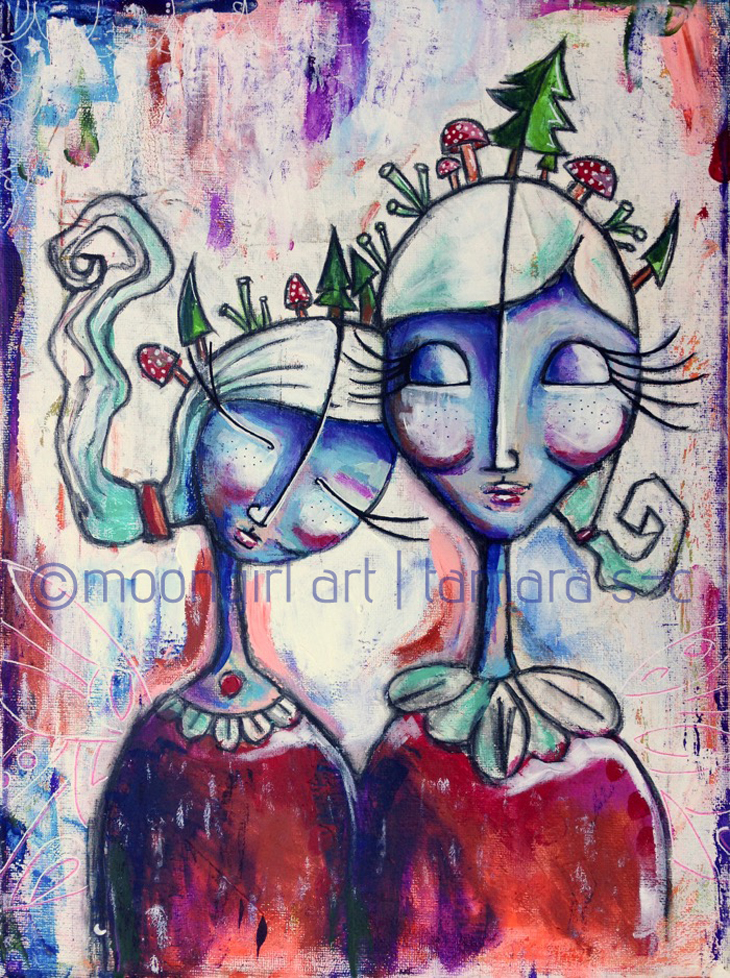 Auction piece: Friends, 12×12 mixed media on stretched canvas