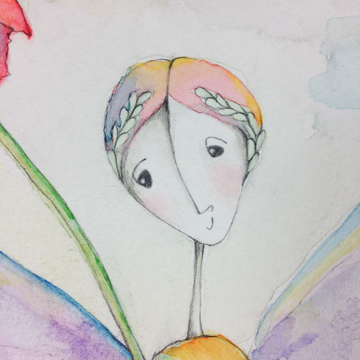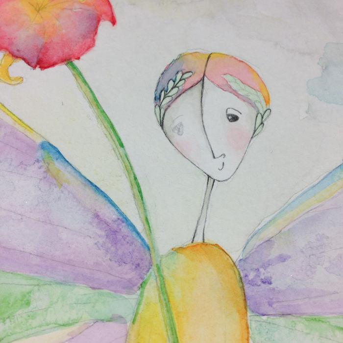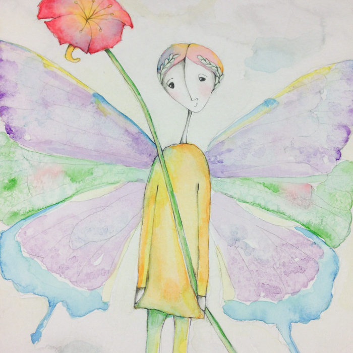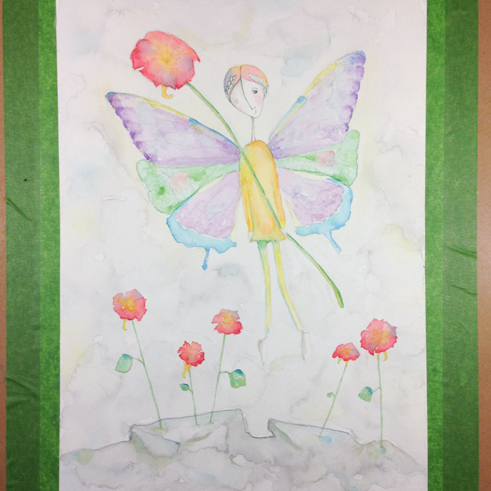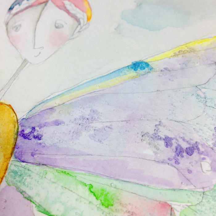 I love the way watercolour reacts to salt and was excited to use this process for her wings.